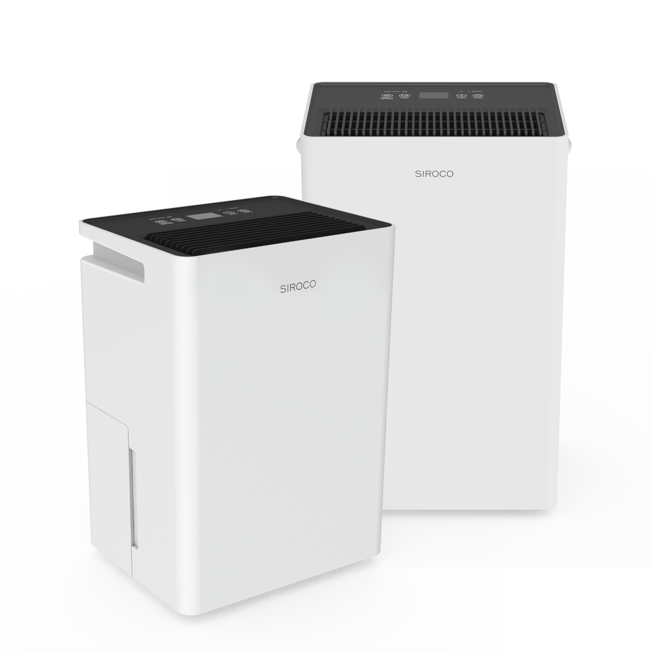Deshumidificador portátil con control de humedad. Modelos disponibles: 12 l/día, 16 l/día y 20 l/día (capacidad de deshumidificación).