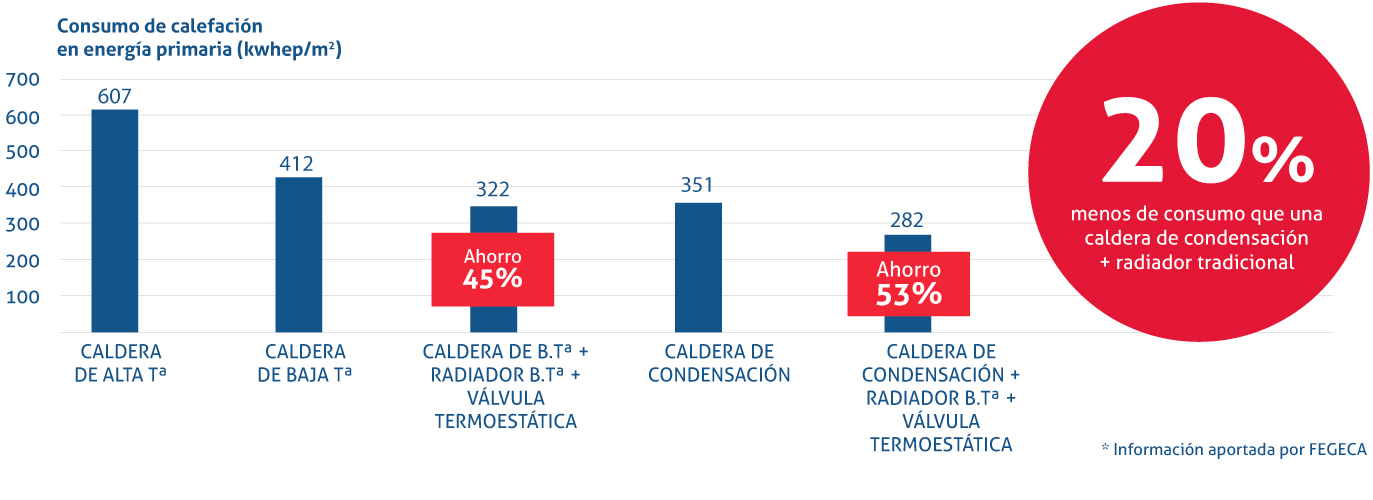 Los radiadores de baja temperatura contribuyen a alcanzar el objetivo final del Documento Básico de ahorro energético del CTE de disminución del consumo energético y mejora de la eficiencia energética de los edificios.