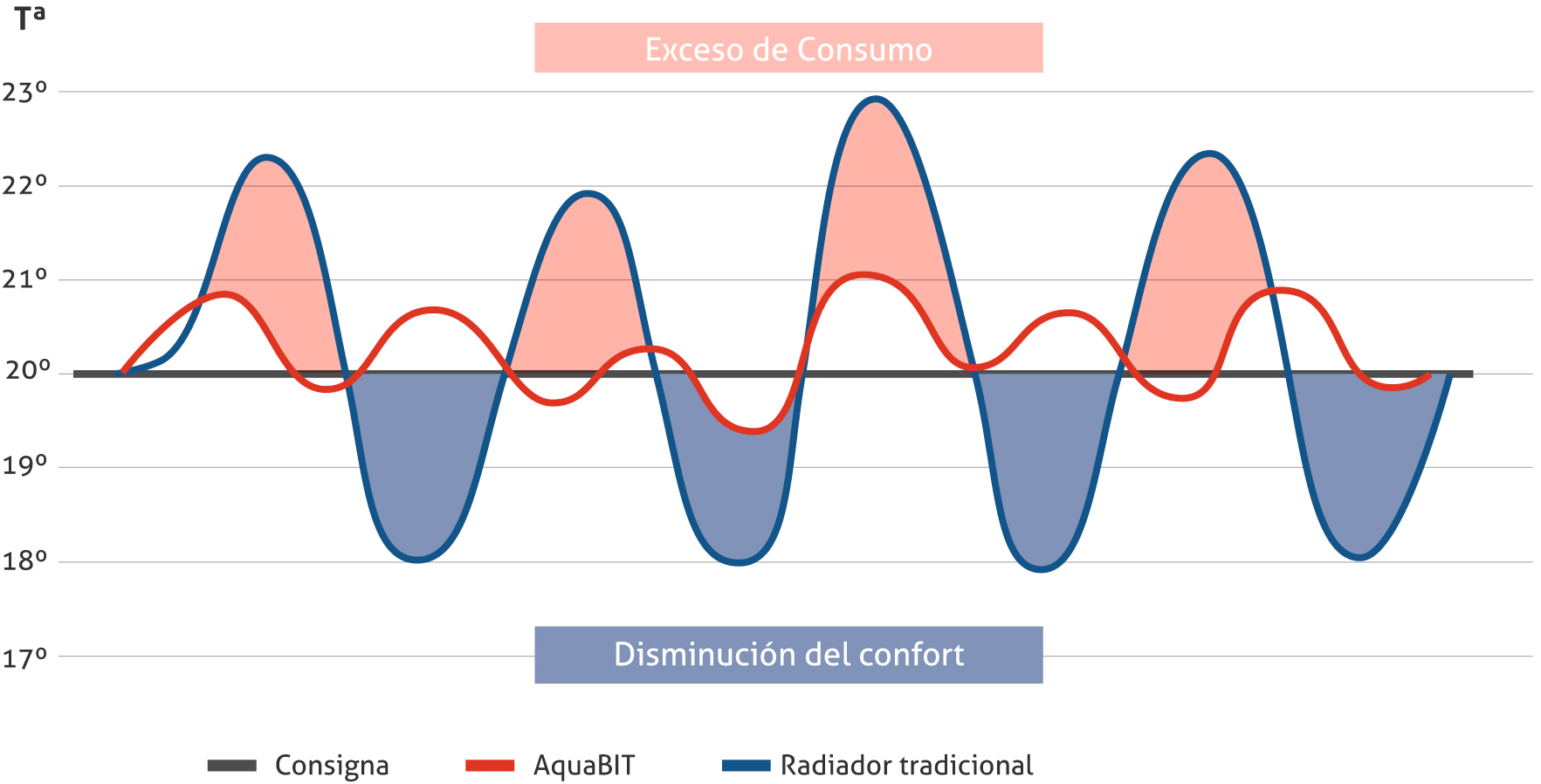 › Confort controlado. Aquabit se adapta a los cambios de temperatura, reaccionando más rápido a cambios térmicos por ventilación, iluminación, ocupación…