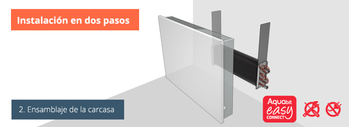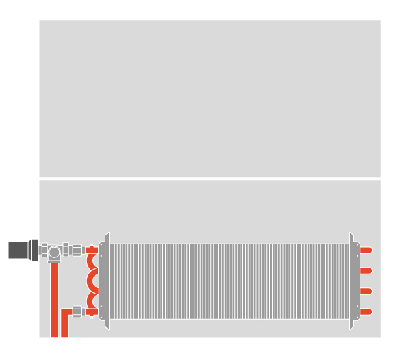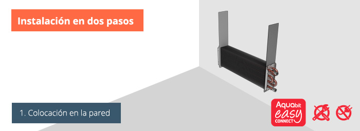 › La altura del equipo cubre la distancia habitual de tomas. El diseño del equipo está pensado para que queden ocultas las tomas de un radiador convencional de 60cm de altura sin necesidad de modificarlas.